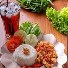 Ayam goreng crispy dengan telor ceplok atau dadar